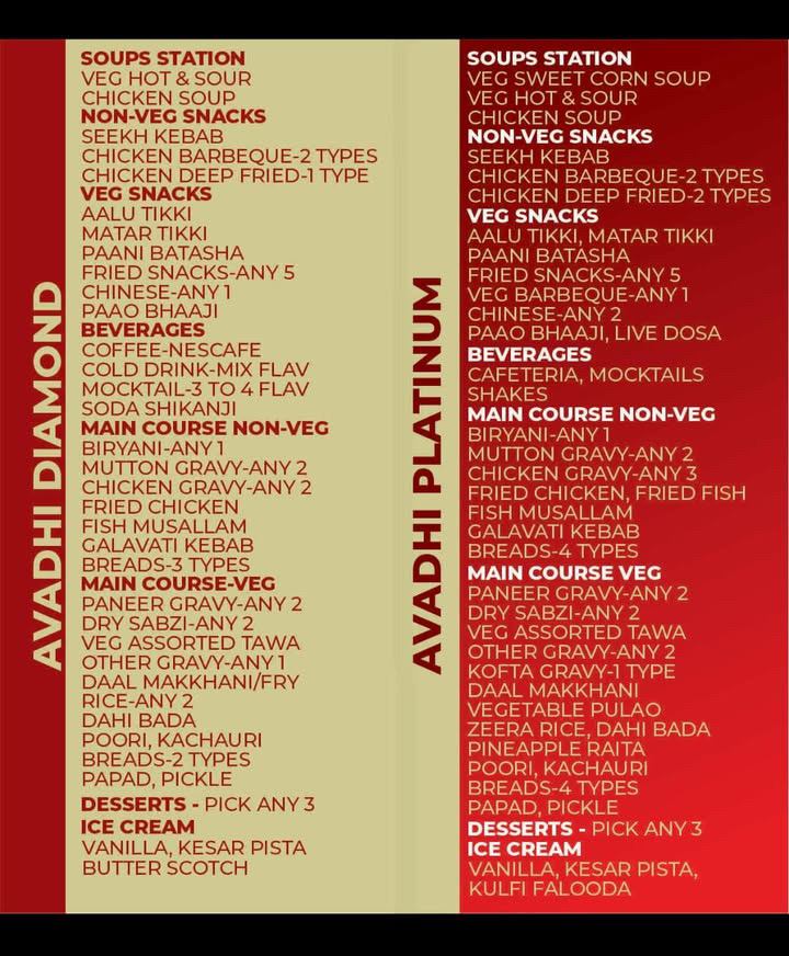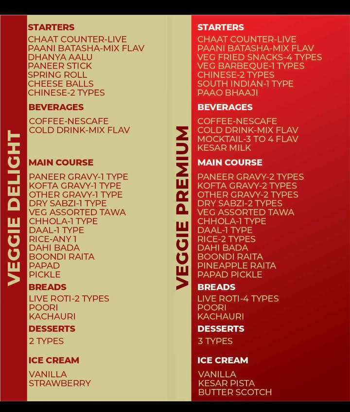 Select the required items of your choice from starters to main course, beverages and desserts & make your own menu.